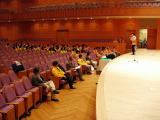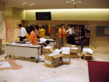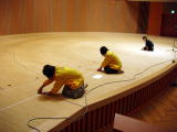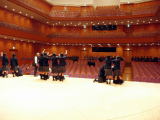 ![]() ホールに出演団体のリハ用に 借りた打楽器を搬入中! |