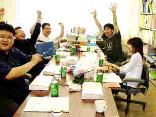| 2003年度 徳島県吹奏楽連盟 第一事業部会 Vol.2 2003年6月28日(土) 10:30ぐらい 徳島県立城西高等学校 総合学科推進室にて 皆さんで,プログラムの校正をしております。 表紙は違いますが, 中身は全国大会のプログラムと同じ標記です。 |